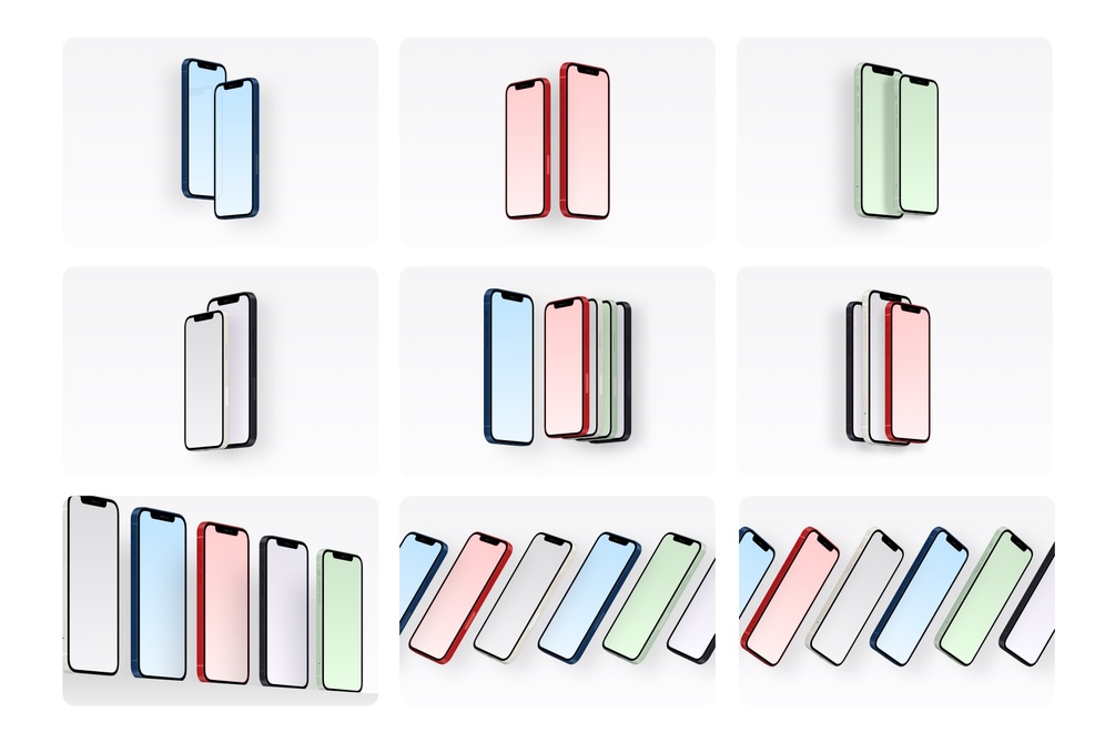 2. iPhone 12 • 10 vector mockups + 9 prepared scenes. All colors. For Photoshop and Sketch.