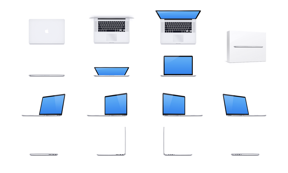 1. MacBook Pro • 15 vector mockups at various views. For Photoshop.